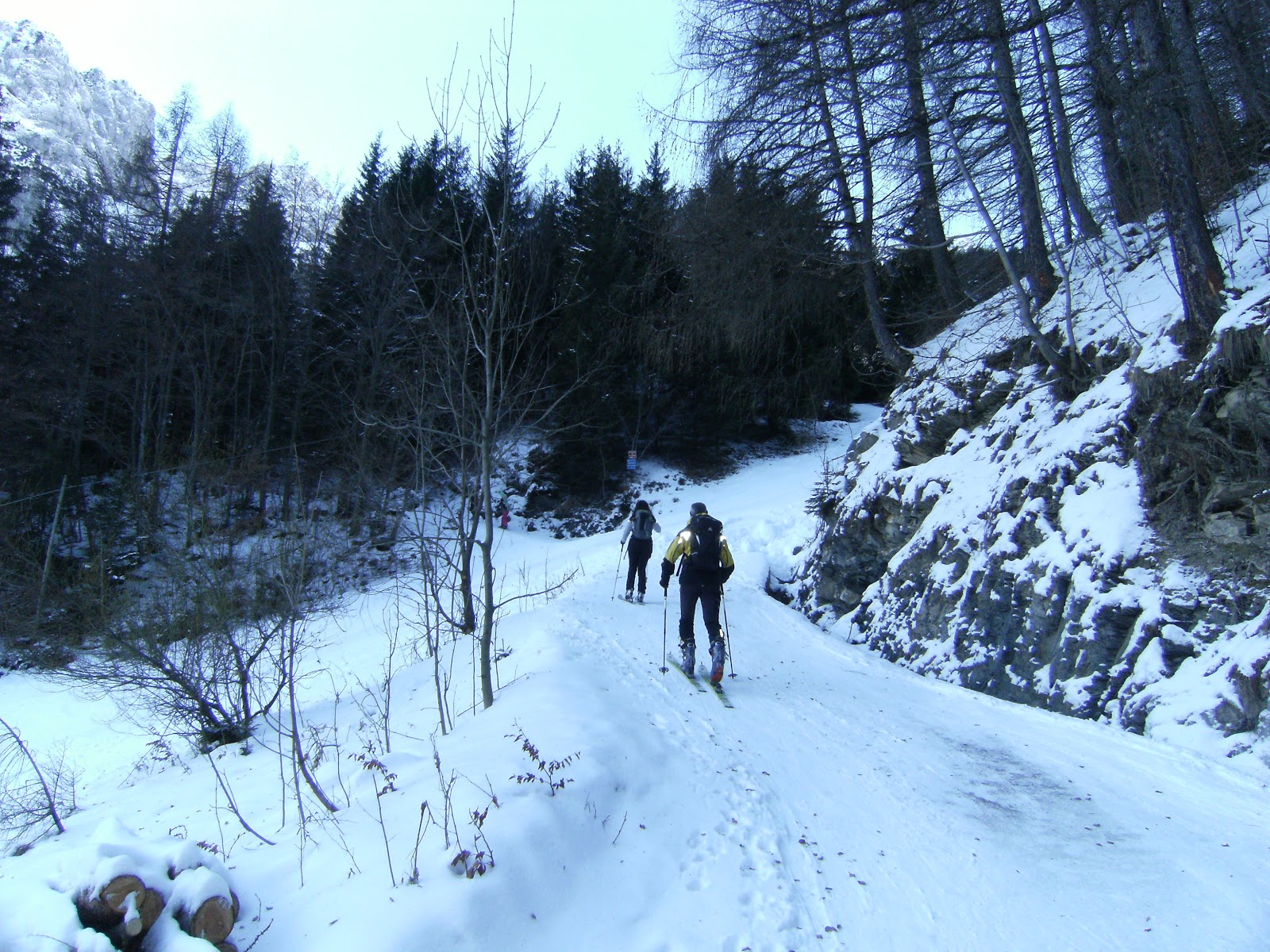 Di fatto il tracciato risale la montagna restando sempre nel bosco ma a poche decine di metri dalla pista. In pratica, però, la pista è proprio fuori vista e si ha l'impressione di salire in ambiente selvaggio ed isolato. Infatti da questo momento in poi la gita assume un aspetto decisamente più interessante, soprattutto sotto il profilo degli scorci montani che offre e per via del fatto che l'esposizione inizia ad essere soleggiata.